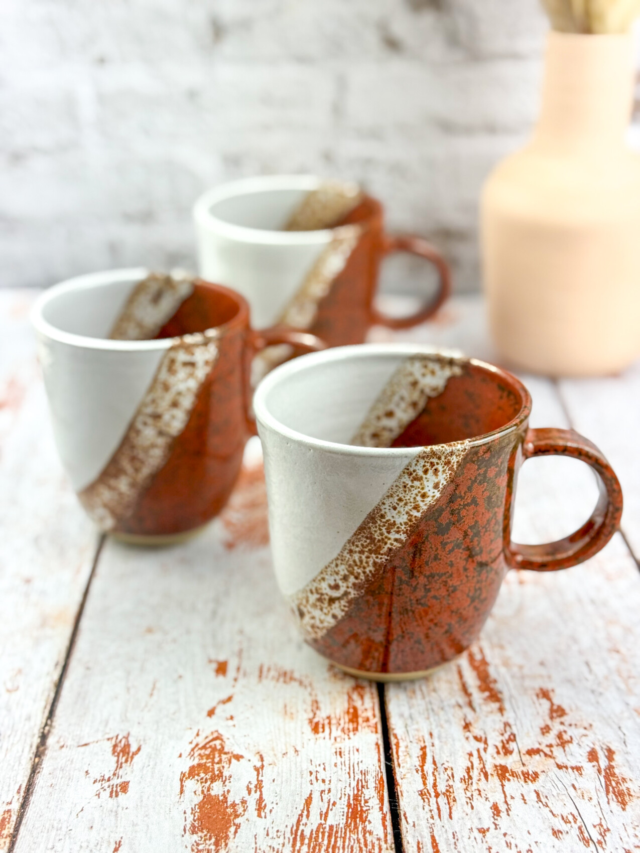 Chaque pièce est tournée à la main dans mon atelier en Ardèche puis recouverte d’un émail signature, formulé et fabriqué dans mon atelier, jouant sur  la superposition et le contraste.